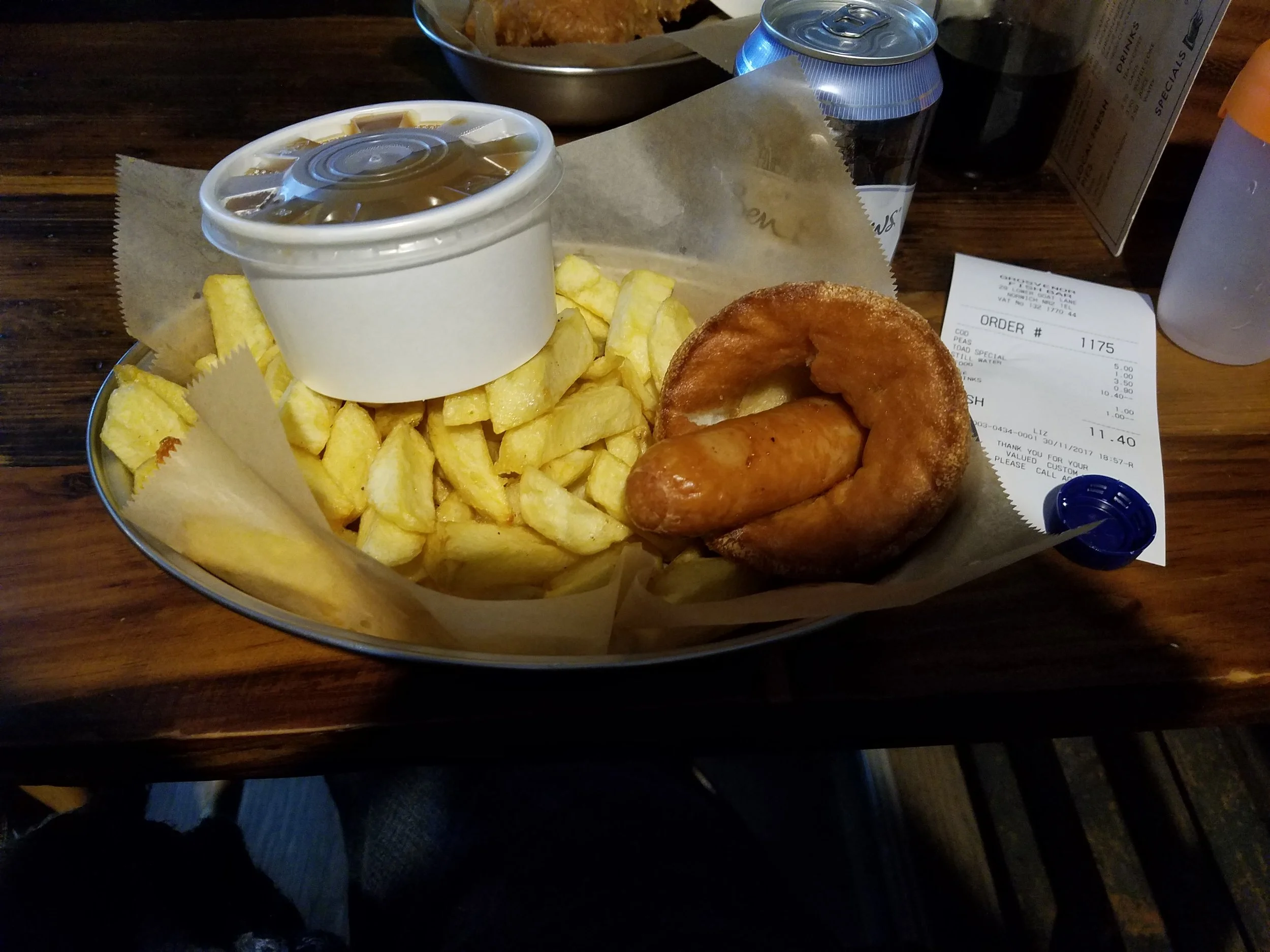 The next day, we journeyed to Greenwich to visit the Astronomers Royal Observatory where we toured the Royal Astronomers' house and planted our feet in both the east and west with respect to the Primer Meridian. To get there, we had to cross the city of Greenwich and a large park, climbing up a steep hill battling sleet. After, we rewarded ourselves with a nice ale and delicious fish and chips at The Greenwich Tavern.