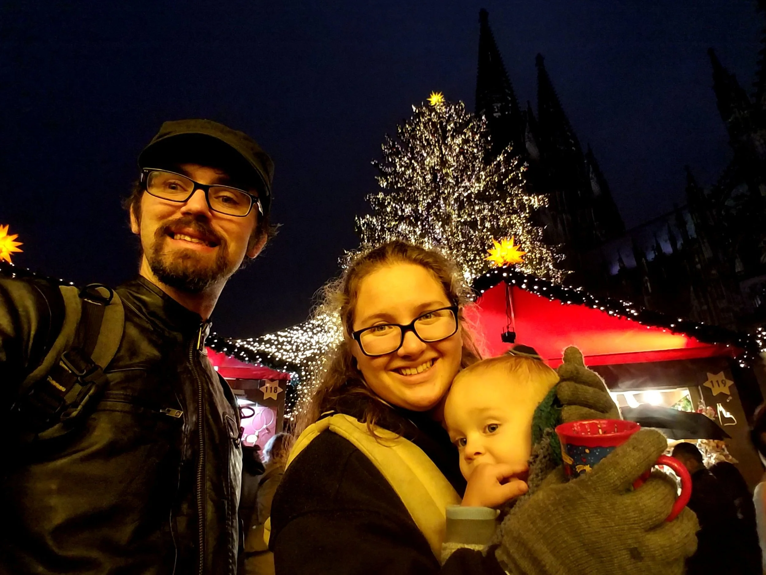 Going back to Köln felt like going home. At the end of our time in Germany, Alex said that he was confident we would always feel we had a home in Köln. Being there, we had a wonderful feeling of belonging, everything was familiar and comforting. We walked around our favorite places near the Dom and Hauptbahnhof. We visited the Christmas markets and drank Glühwein. We ate Currywurst, Jägerschnitzel, and Bockwurst (at our favorite Gaffel am Dom, as well as other places) and enjoyed Spaghettieis (vanilla ice cream that looks like spaghetti and is topped with strawberry sauce and white chocolate shavings), Brezeln, and Berliner (the best jelly-filled donut in the world) for dessert. We saw St. Nicholas at Gaffel am Dom where he gave out chocolate and the entire beer hall burst out into (German) song. We visited people who were important to us when we lived there, namely our Hebamme Petra (who visited our house several times a week to check up on us after we had Güni) at Schamong Kaffee and the Cologne Laboratory Astrophysics Group (who welcomed me with hugs and gave me an overwhelming feeling of being loved and important, especially when they talked to me about coming back sometime to collaborate). We visited Ehrenfeld, the neighborhood where we lived, and ate at our favorite Döner place before walking past our old apartment building with misty eyes. Germany was wonderful, and there is no doubt about it: Köln is home. <3