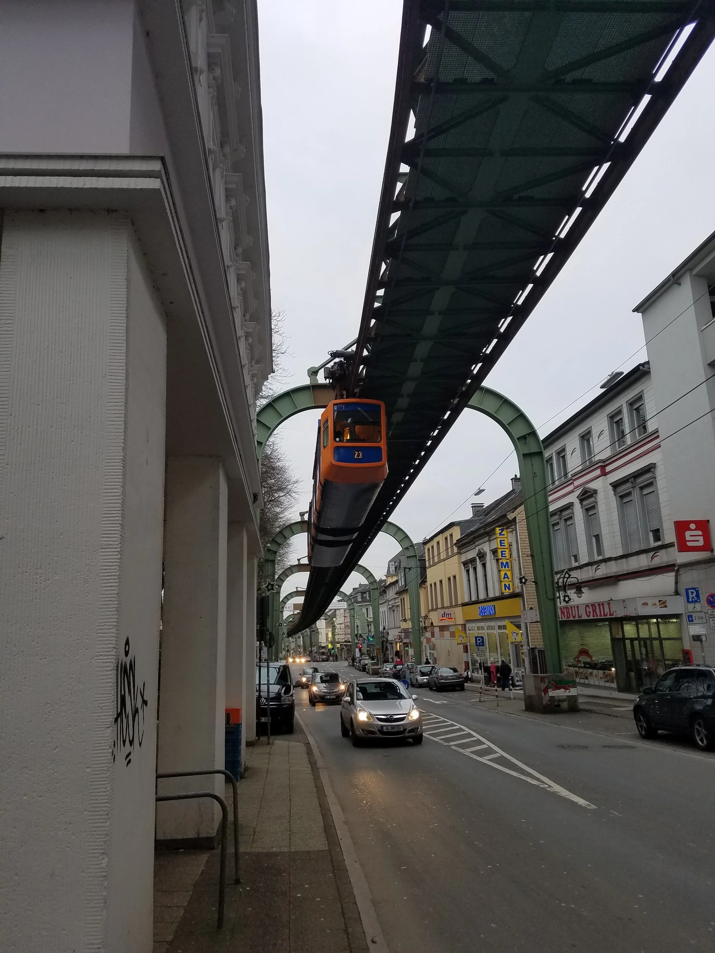 Despite Wuppertal being only a 30-minute train ride from Köln, we never made the time to go there when we lived in Germany. We changed that on this trip. Wuppertal is perhaps most famous for their Schwebebahn, or "floating tram"/suspension railway. After warming up our hands with a cup of glühwein after a jaunt up to Bismarckturm (a stone tower overlooking the city and the botanical gardens), we rode the Schwebebahn from the Hauptbahnhof in the city center to the eastern end of the line before riding it all the way back to the western end where we caught our train back to Köln. The Schwebebahn is